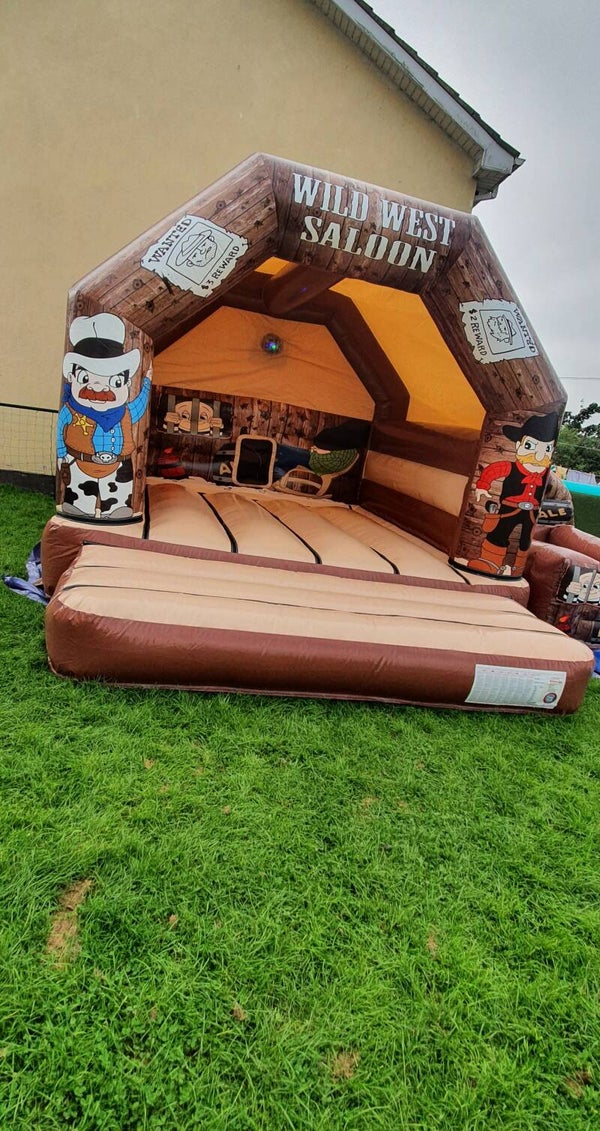 Brown bouncy castle wild west theme, Disco ready (music system by bluetooth and lights system)
