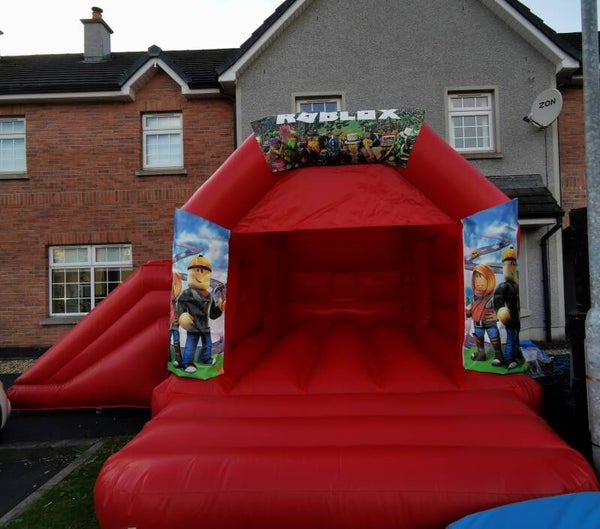 Red side slide bouncy castle disco ready ( music system by bluetooth and lights system) roblox theme / peppa pig theme or tiktok theme